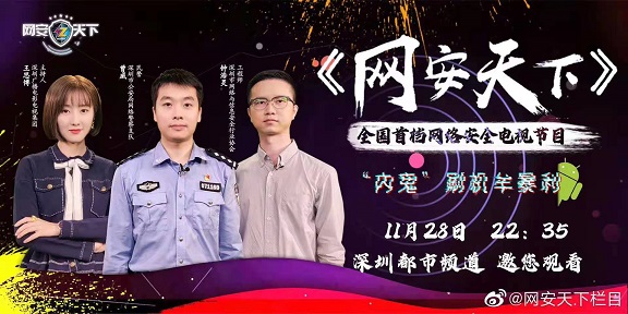 《網安天下》電視節目旨在通過澄清網絡謠言、解讀涉網案件、普及網絡知識等形式,幫助廣大市民群眾提升風險防范意識,助力企業優化網絡營商環境,跟上深圳經濟特區智慧城市發展建設的大步伐。節目于每周六晚22:30播出,同時會在深圳網警新浪微博號、微信視頻號等官方媒體渠道推送發布。