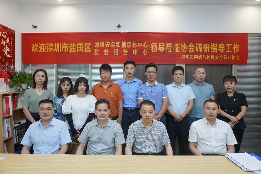 5月21日上午,深圳市鹽田區(qū)網(wǎng)絡(luò)安全和信息化中心主任林軍、鹽田區(qū)政務(wù)服務(wù)中心副主任廖英豪一行蒞臨深圳市網(wǎng)絡(luò)與信息安全行業(yè)協(xié)會進行調(diào)研指導(dǎo)交流工作。