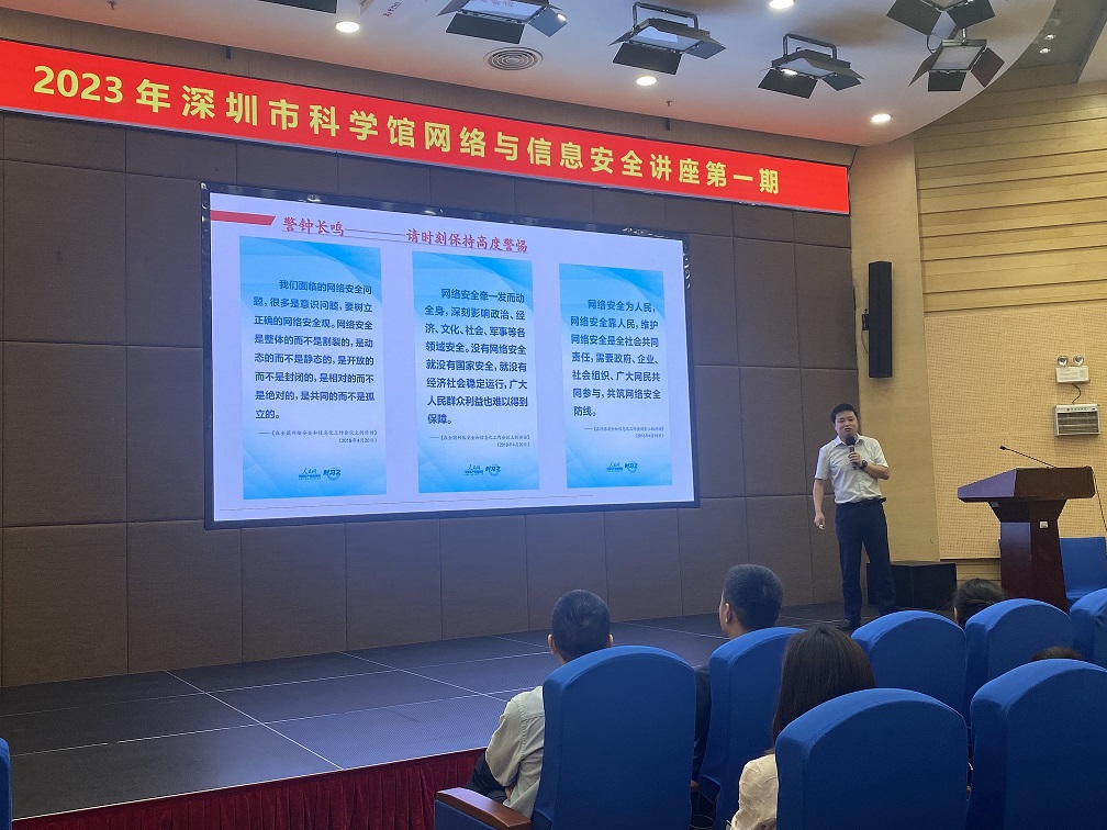 2023年5月13日,由深圳市網絡與信息安全行業協會和深圳市科學館聯合主辦的《網絡與信息安全知識》科普講座第一期,在深圳市科學館一樓報告廳成功舉辦。