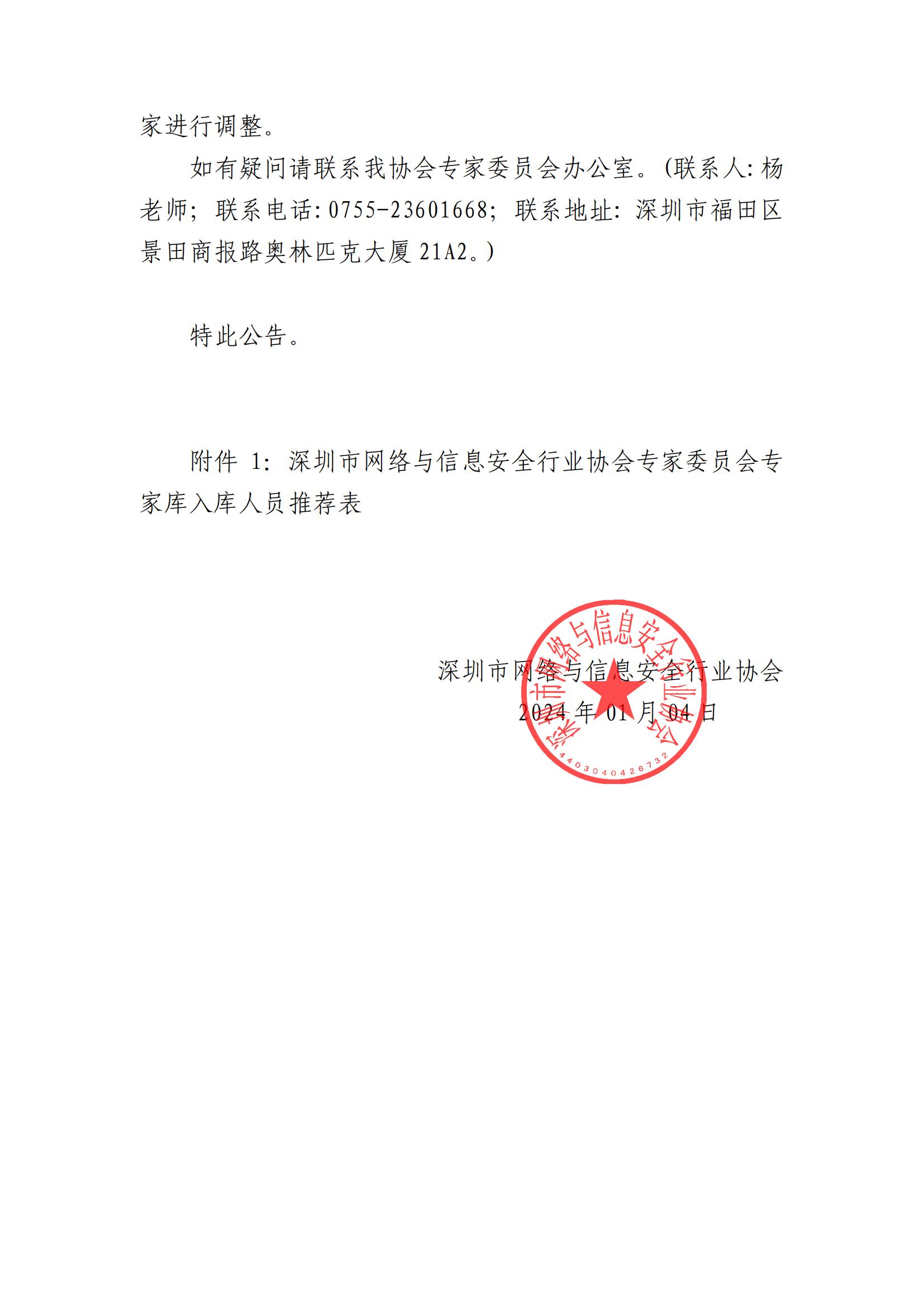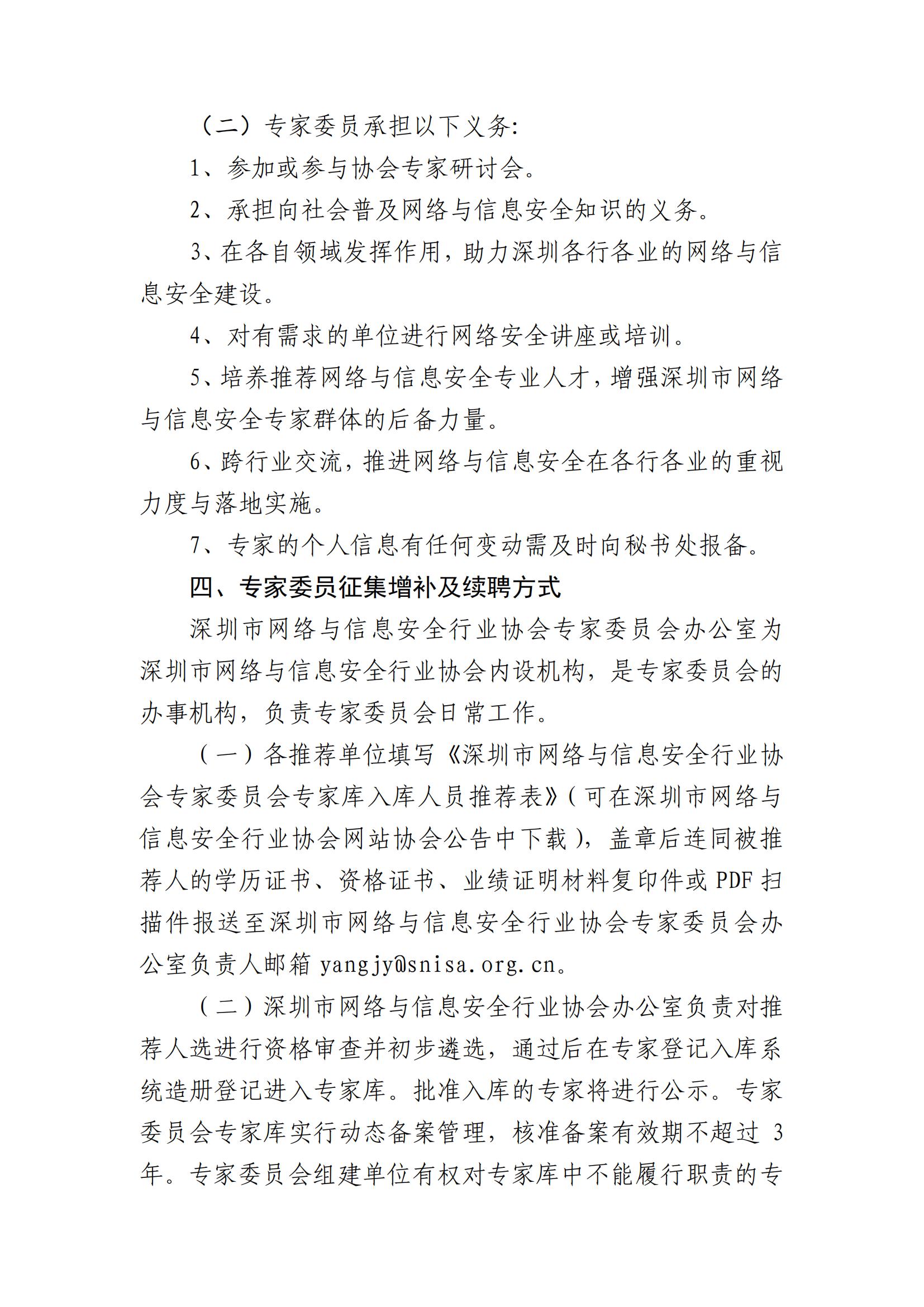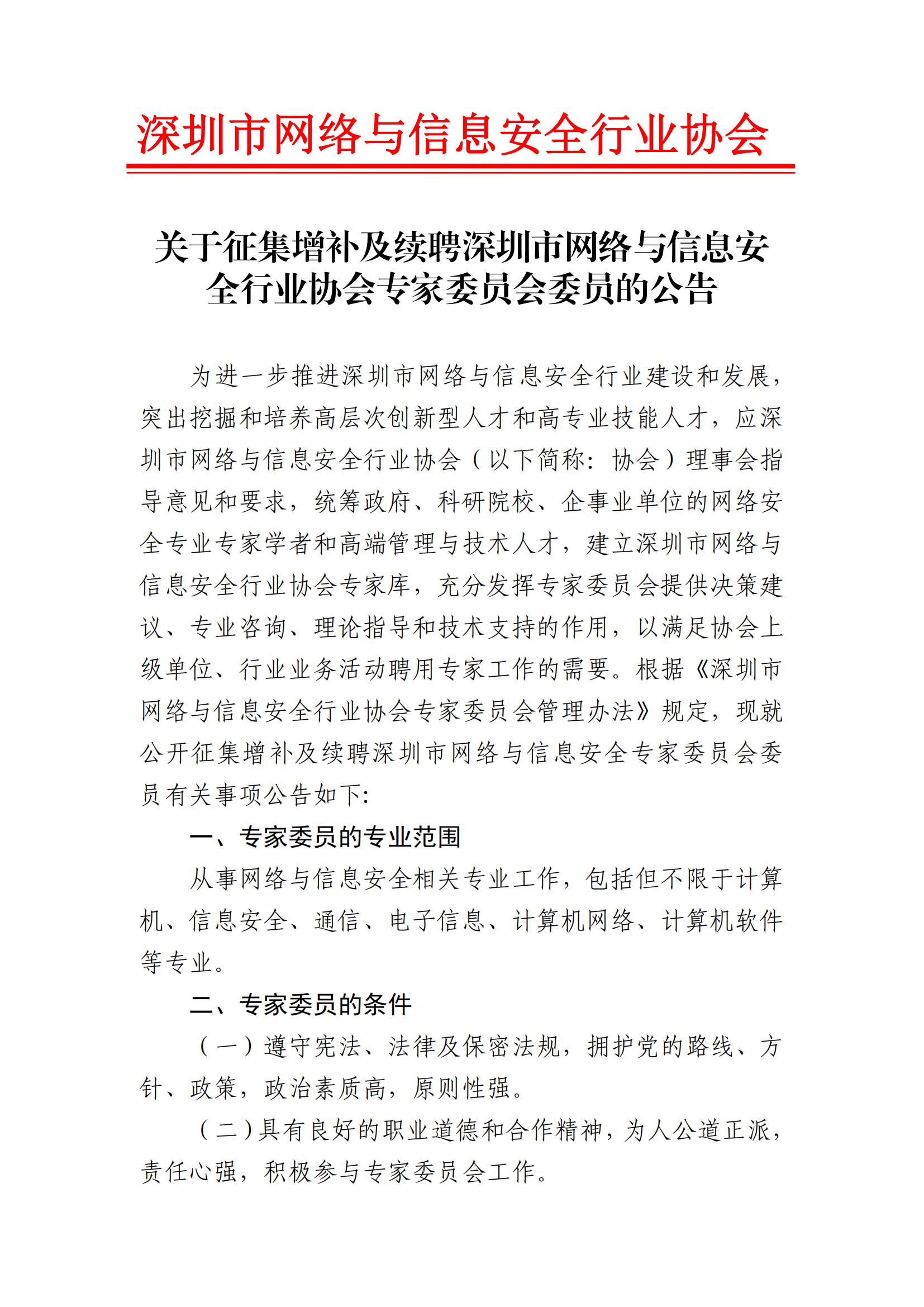 關于征集增補及續聘深圳市網絡與信息安全行業協會專家委員會委員的公告