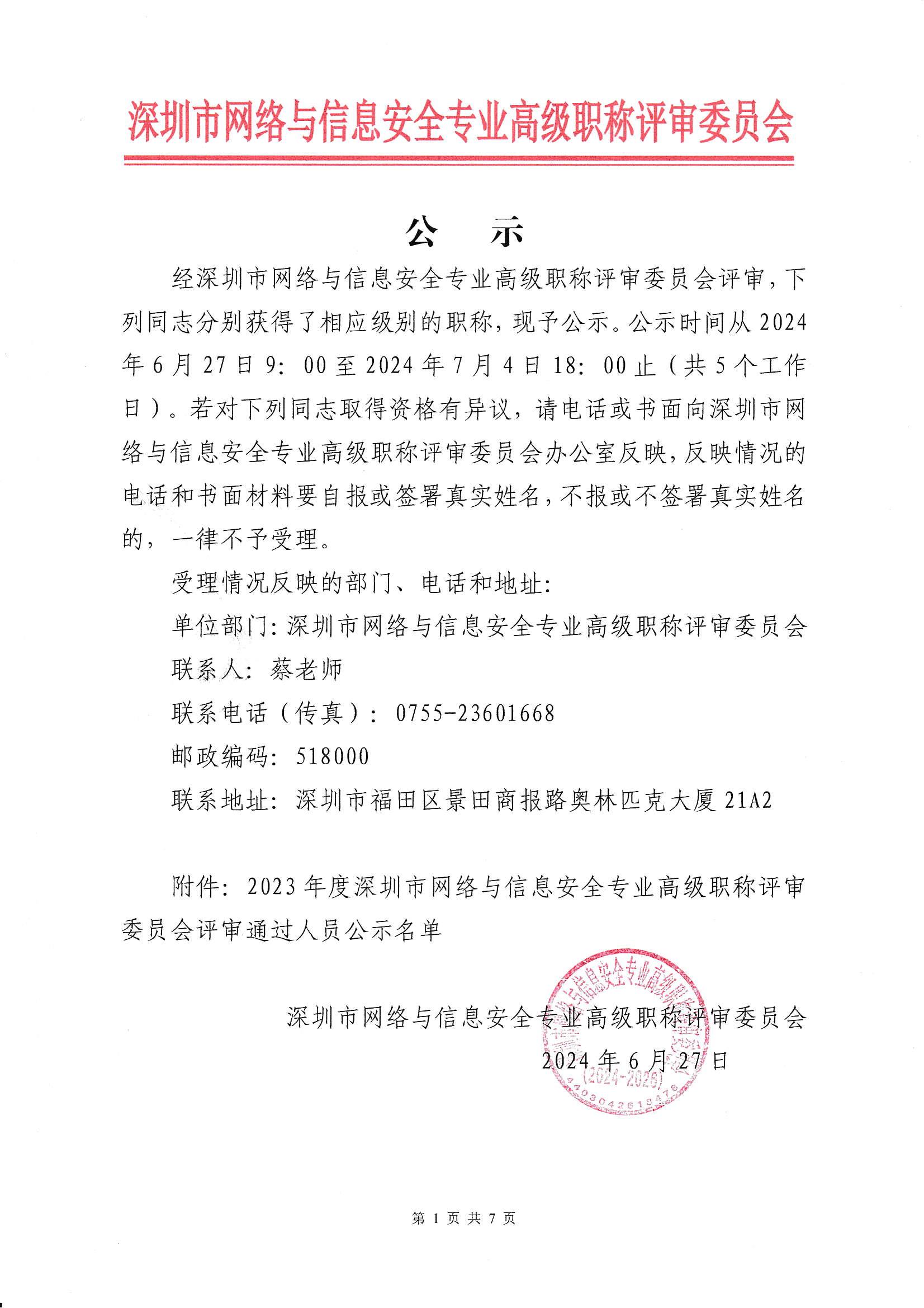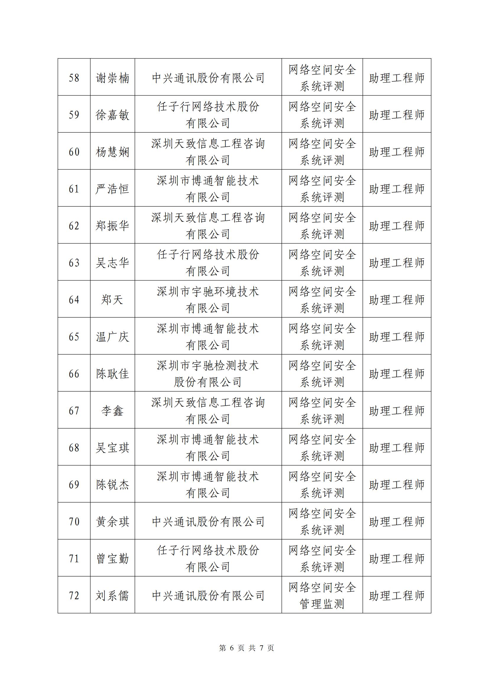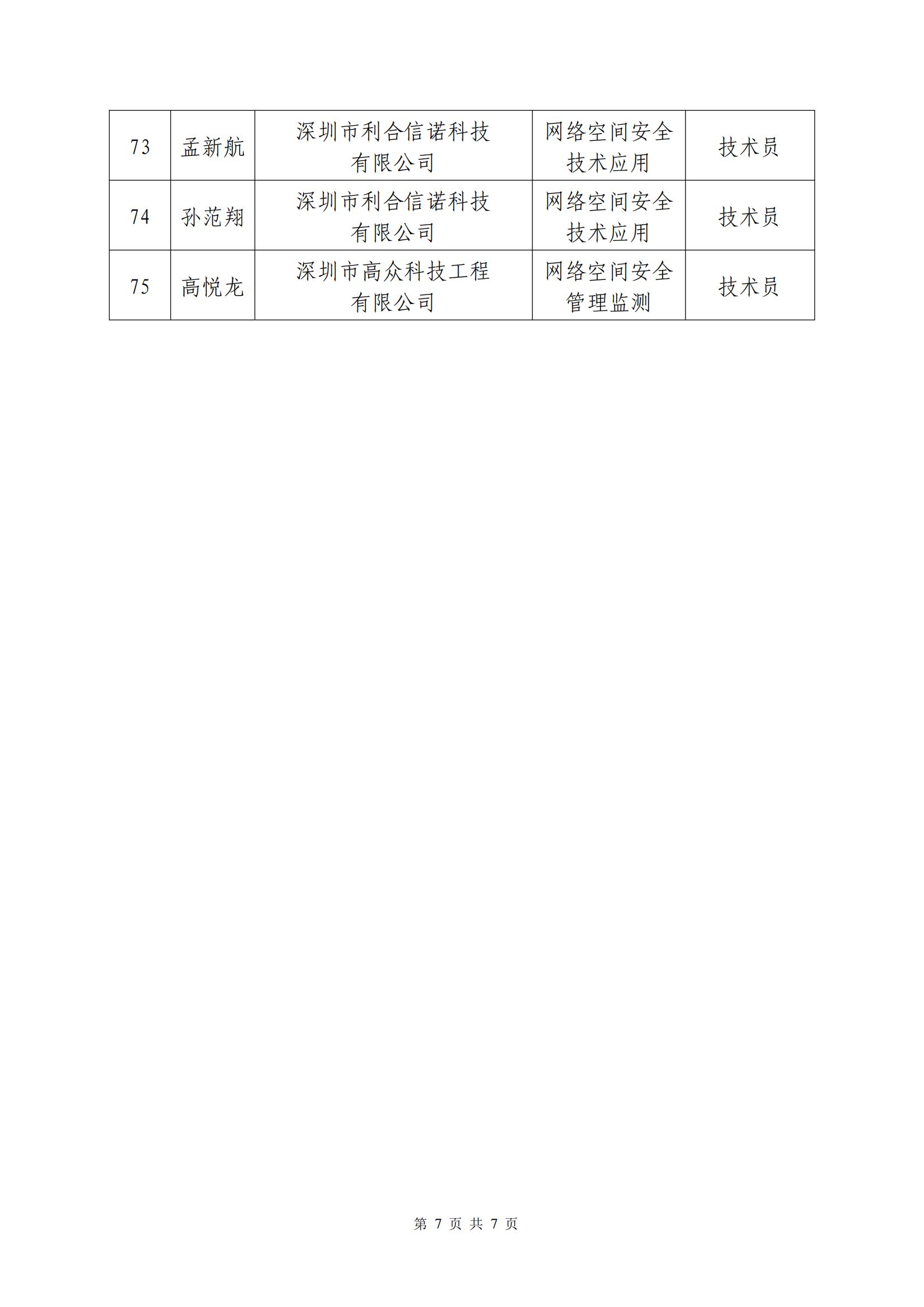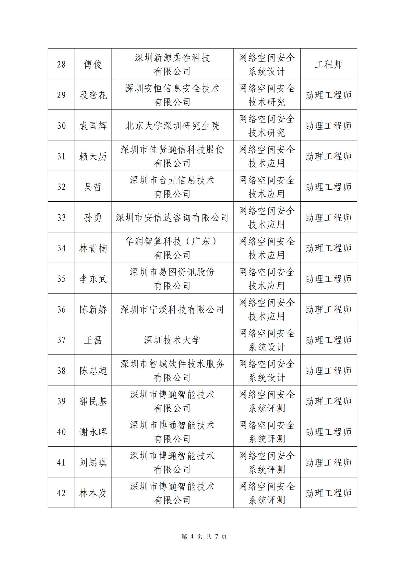2023年度深圳市網絡與信息安全專業高級職稱評審委員會通過評審人員公示