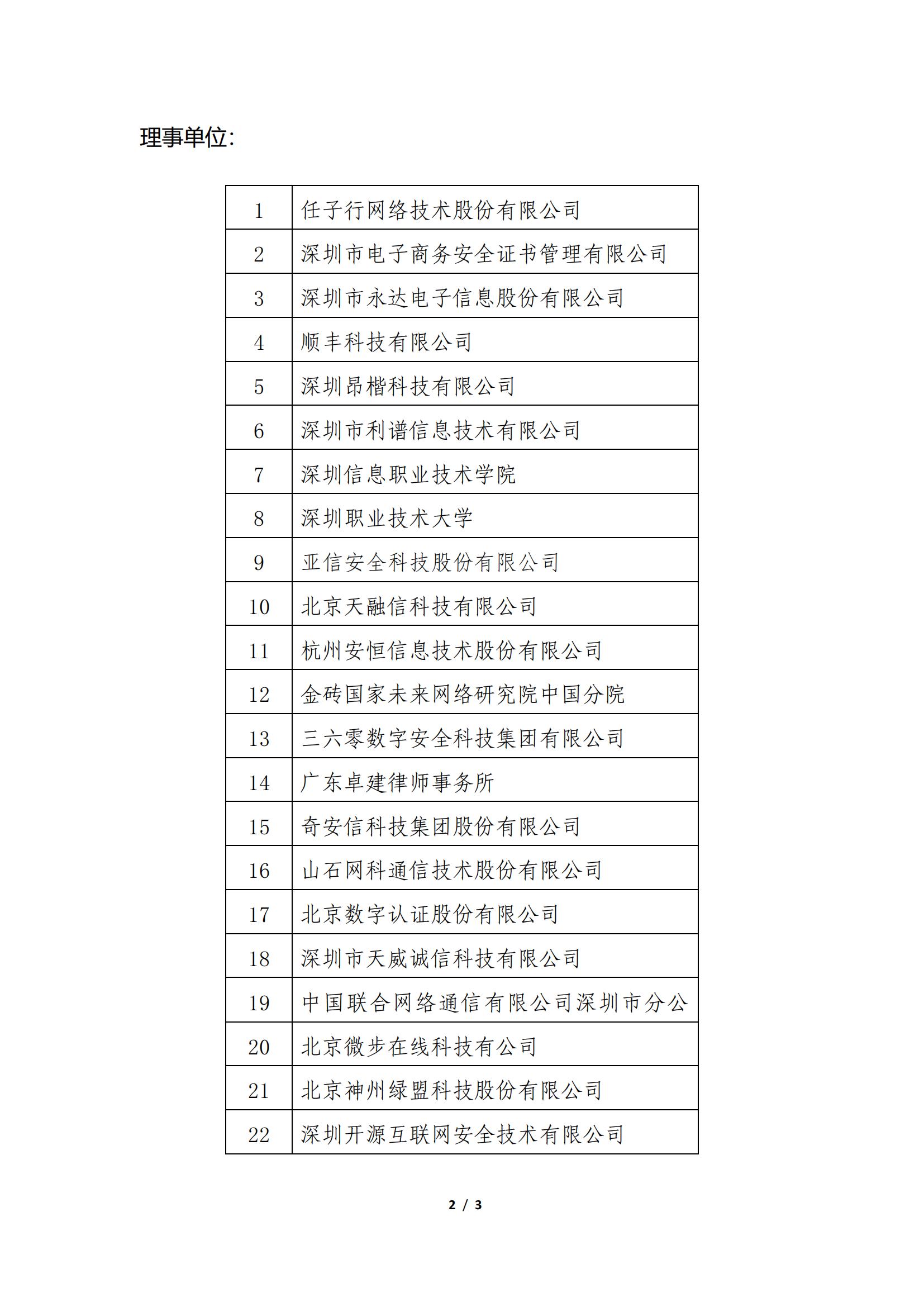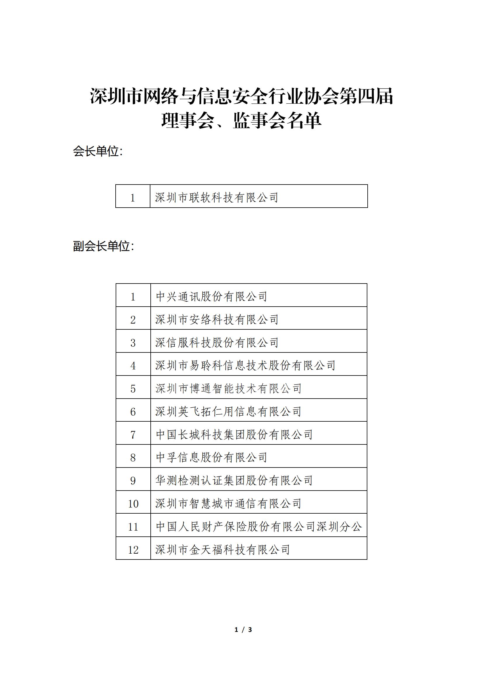 深圳市網絡與信息安全行業協會第四屆理事會、監事會名單公示